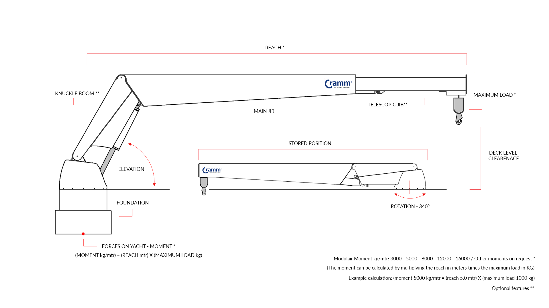 Depending on your requirements and ideas, Cramm can supply a crane to match every need. For example, Cramm has engineered a fully custom-made deck crane with a hoisting capacity of SWL 15 tonnes and a teak gangway on top to show one of our customers our possibilities. Contact us to find out more about what we can offer you.